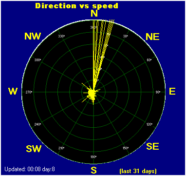 Maximum windspeed = 0.0 mph from 00°( N ) on day 08 at time 00:02