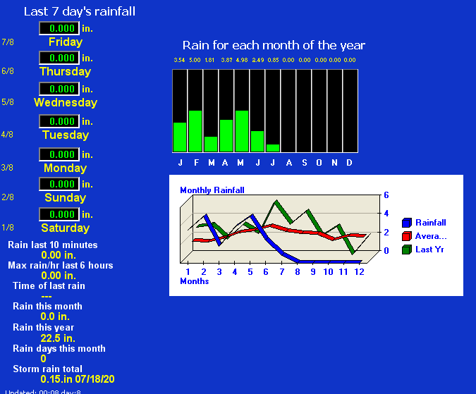 Maximum rain per minute = 0.000 in on day 08 at time 00:02